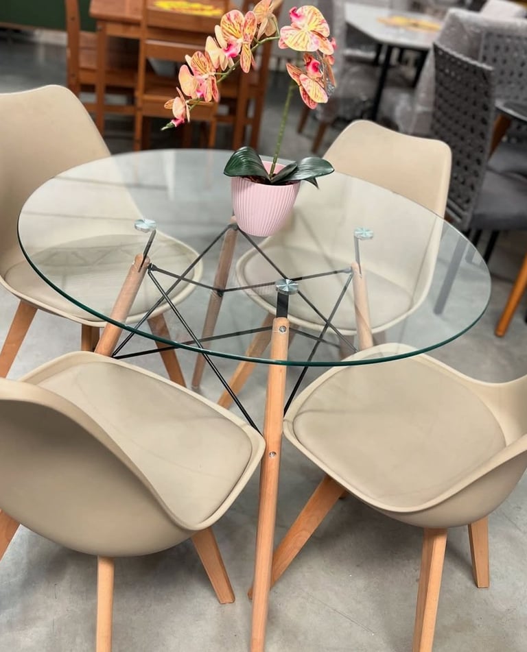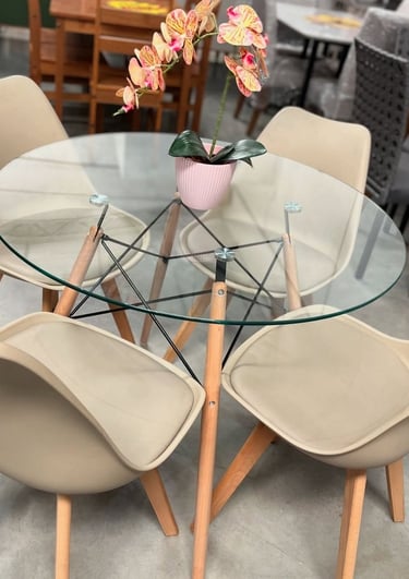Mesas para jantar e escritório com design robusto.